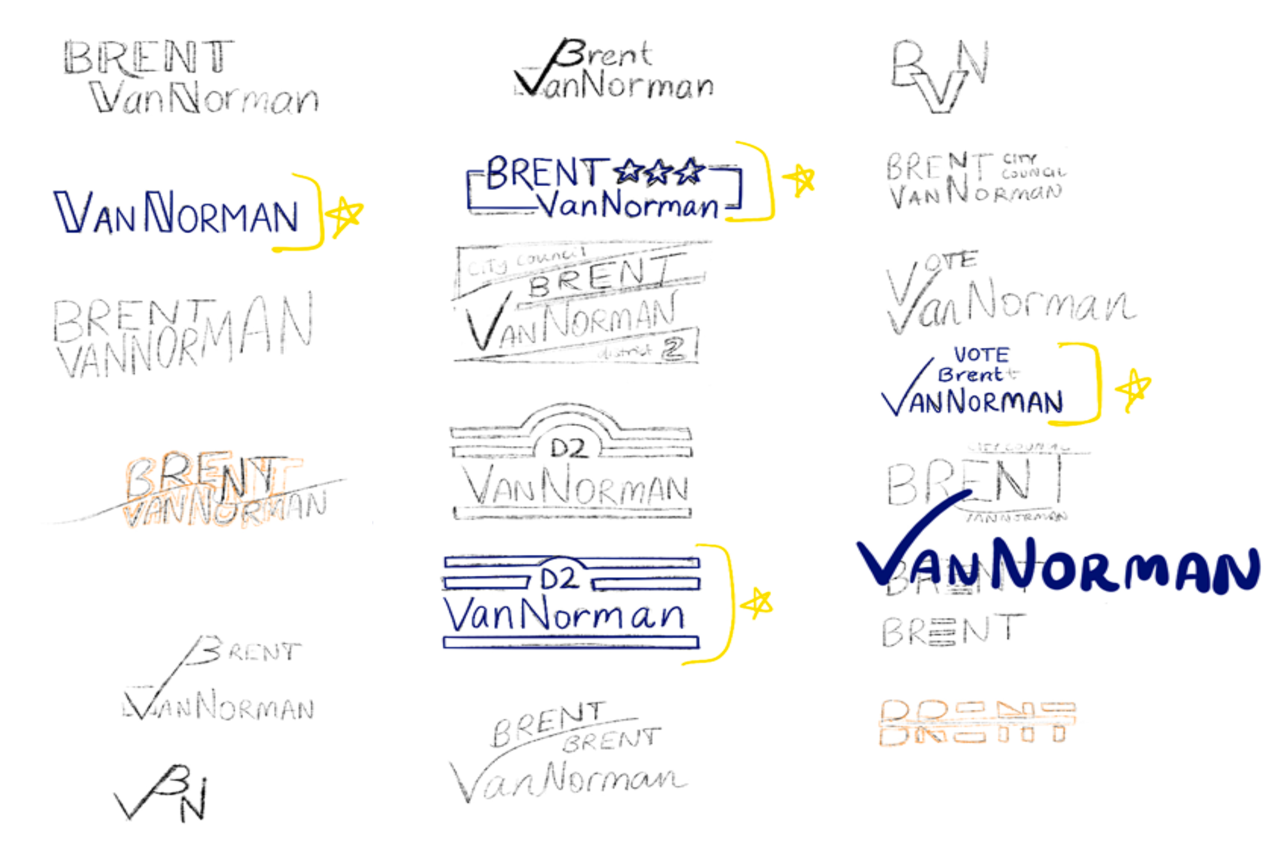 After my initial interview with Brent and his team, I put together a set of sketches and concepts. From here, we narrowed down to the option that best represented the candidate.
